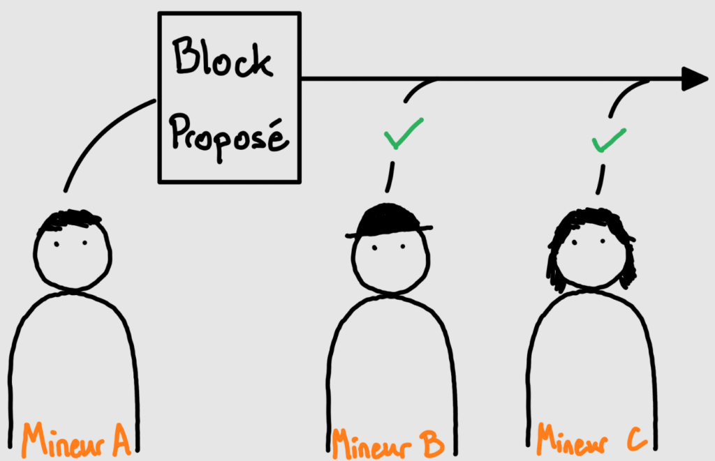 Le bloc est alors proposé et vérifiés par les autres mineurs.
